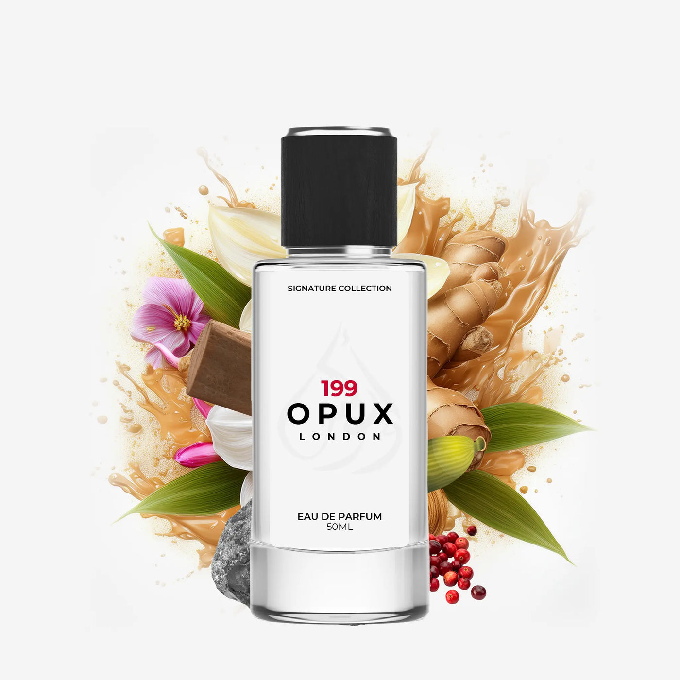 Opux - 199 opens with a burst of spicy cardamom and ginger, creating an invigorating first impression. As it develops, the heart reveals a delicate blend of water lily, orchid, and jasmine, enveloping you in a soft floral embrace. The fragrance settles into a rich base of dark amber, kyara incense, and sandalwood, leaving a lasting impression of warmth and depth.